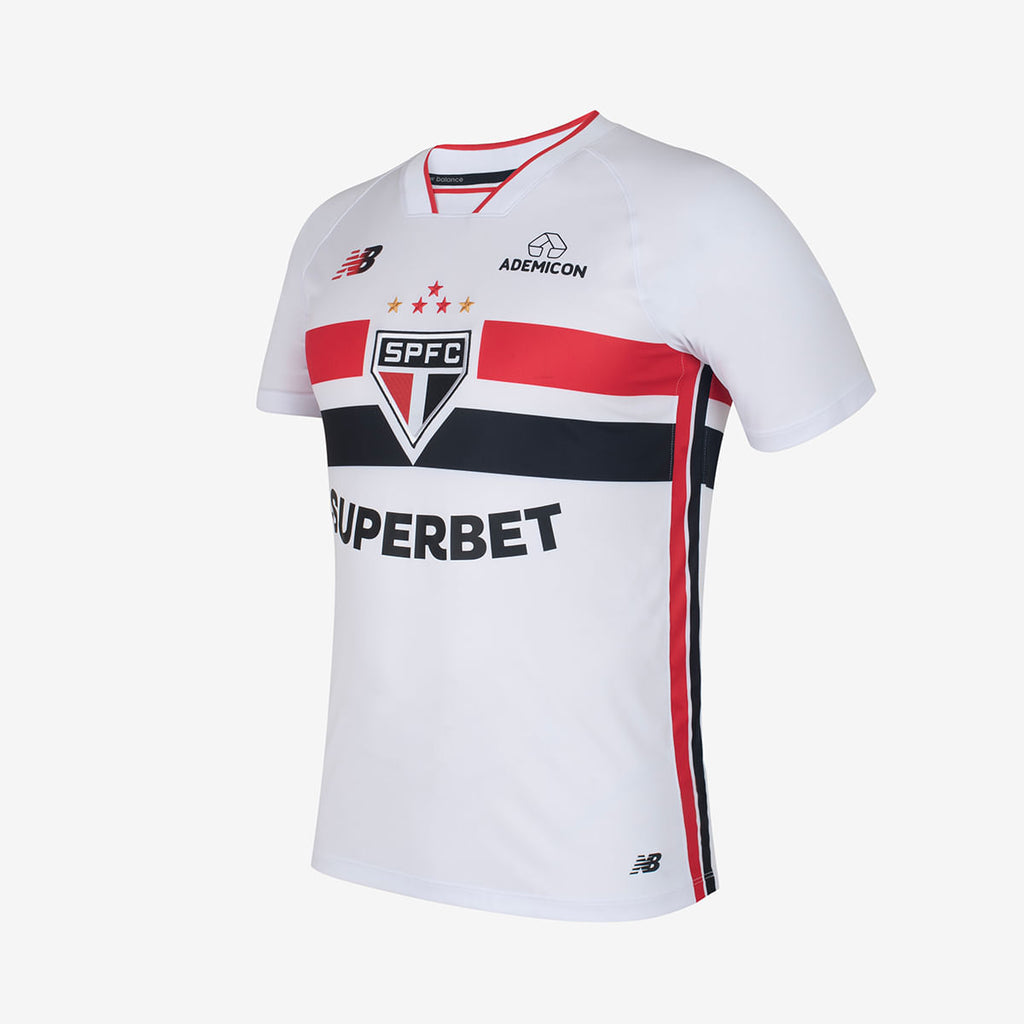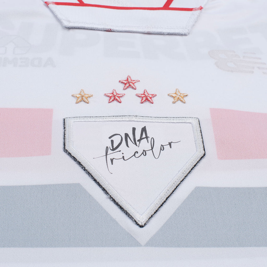 A Camisa São Paulo I 26/27 New Balance Jogador Masculina é o modelo oficial utilizado pelos atletas em campo, desenvolvida com foco em performance, tecnologia e respeito à história do São Paulo Futebol Clube. Com design que homenageia a trajetória do Tricolor, apresenta frente e mangas em tecido jacquard respirável, que proporciona leveza, conforto e frescor mesmo em alta intensidade. A tecnologia NB DRY atua na absorção e evaporação do suor, mantendo o corpo seco e favorecendo o desempenho durante o jogo. As costas em mesh garantem máxima respirabilidade e ventilação estratégica, contribuindo para melhor controle térmico. O escudo do clube em TPU 3D vitrificado com estampa interna “DNA Tricolor” reforça a paixão e a identidade são-paulina, enquanto o selo comemorativo em TPU 3D celebra os 96 anos de história do SPFC, agregando valor exclusivo ao uniforme. O logo New Balance em degradê complementa o visual moderno da peça. A frase “Dentre os Grandes és o primeiro”, aplicada em transfer à base d’água na parte posterior abaixo da gola retilínea, evidencia a grandeza do clube. O tape lateral com listras em vermelho, branco e preto adiciona autenticidade e acabamento esportivo ao design. Confeccionada em 100% poliéster, a Camisa São Paulo Jogador oferece caimento leve, respirabilidade e tecnologia de alto rendimento, sendo ideal para torcedores que buscam o padrão profissional dentro e fora de campo.